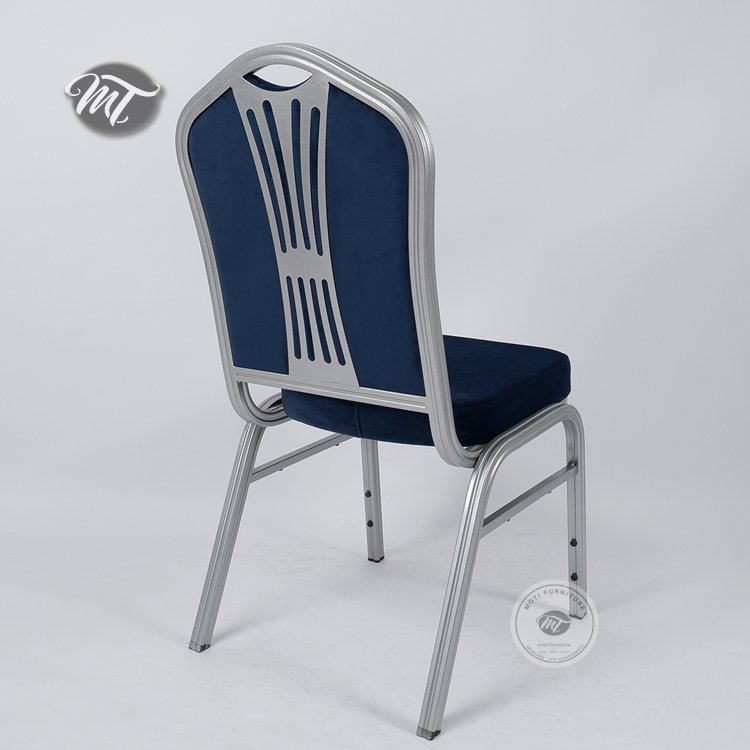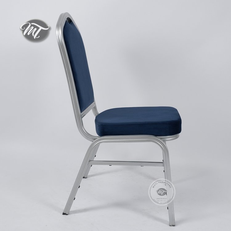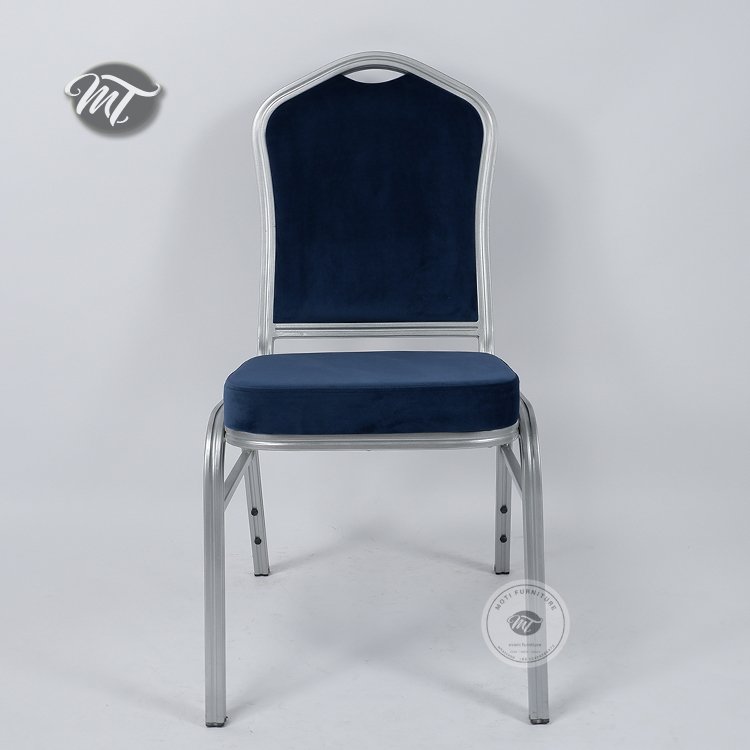 The Banquet Chair Velvet Blue. Featuring high-quality navy blue velvet upholstery, this simple design. Perfect for weddings, banquets, and conferences