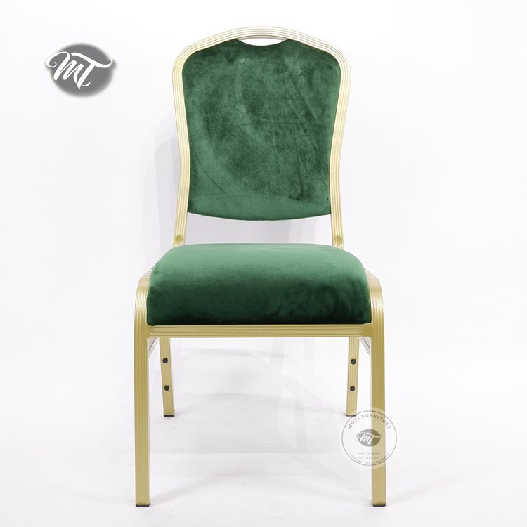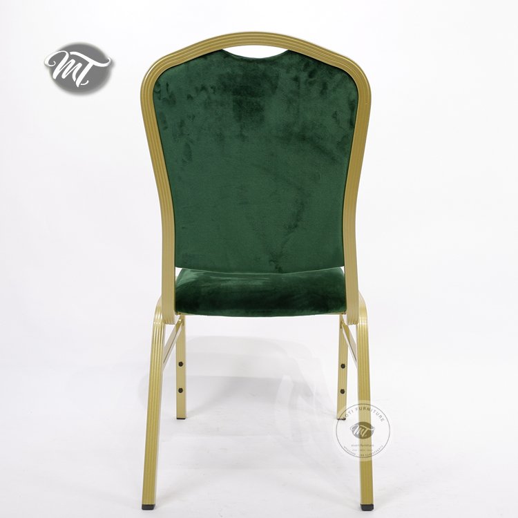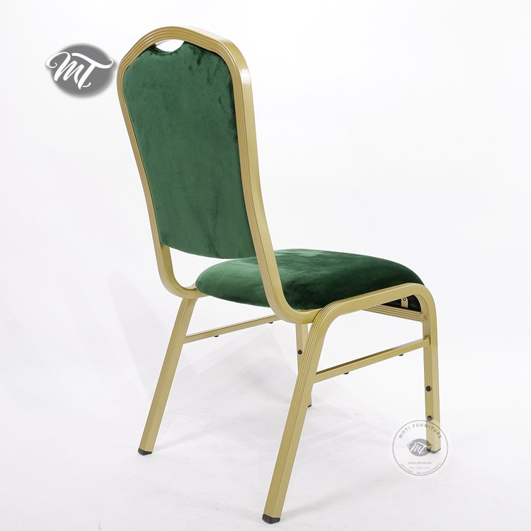 Elegant banquet hall chairs for sale, including luxurious green velvet banquet chairs wholesale. Durable, stackable, and comfortable—perfect for weddings, events, and conferences