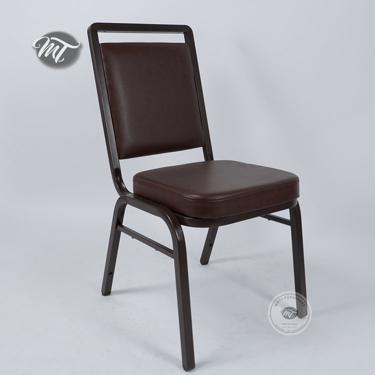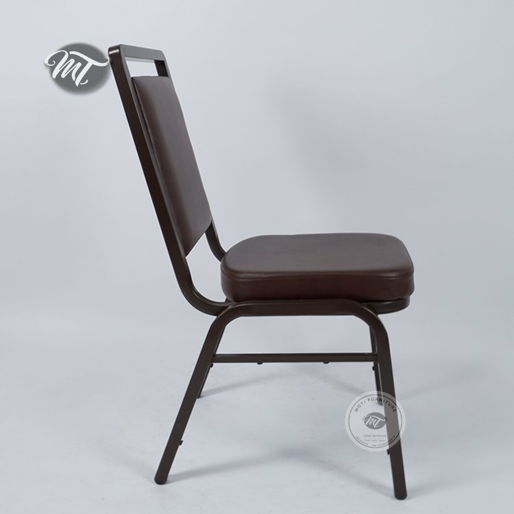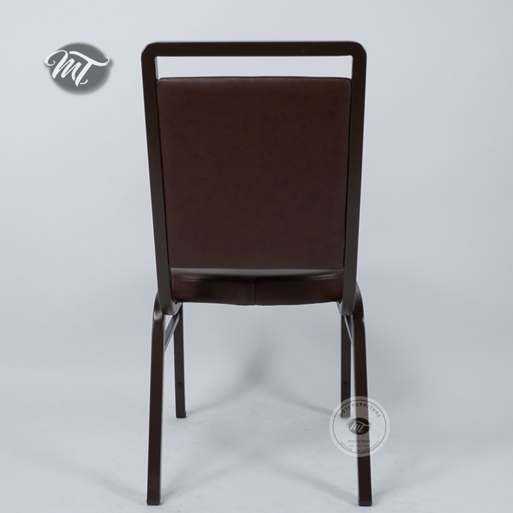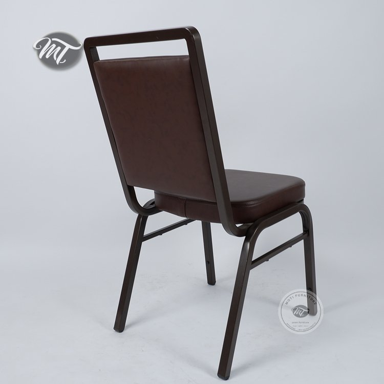 elegant brown leather banquet chairs. Durable, comfortable, and stackable, perfect for weddings, conferences, and formal gatherings